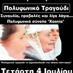 Το Κοινωνικό Πολιτιστικό Κέντρο Βύρωνα υποδέχεται το πολυφωνικό σύνολο “Χαονία”, για μια συναυλία πολυφωνικού τραγουδιού, απόψε στις 21:30 στην Λαμπηδόνα, στο άλσος Αγίας Τριάδας.