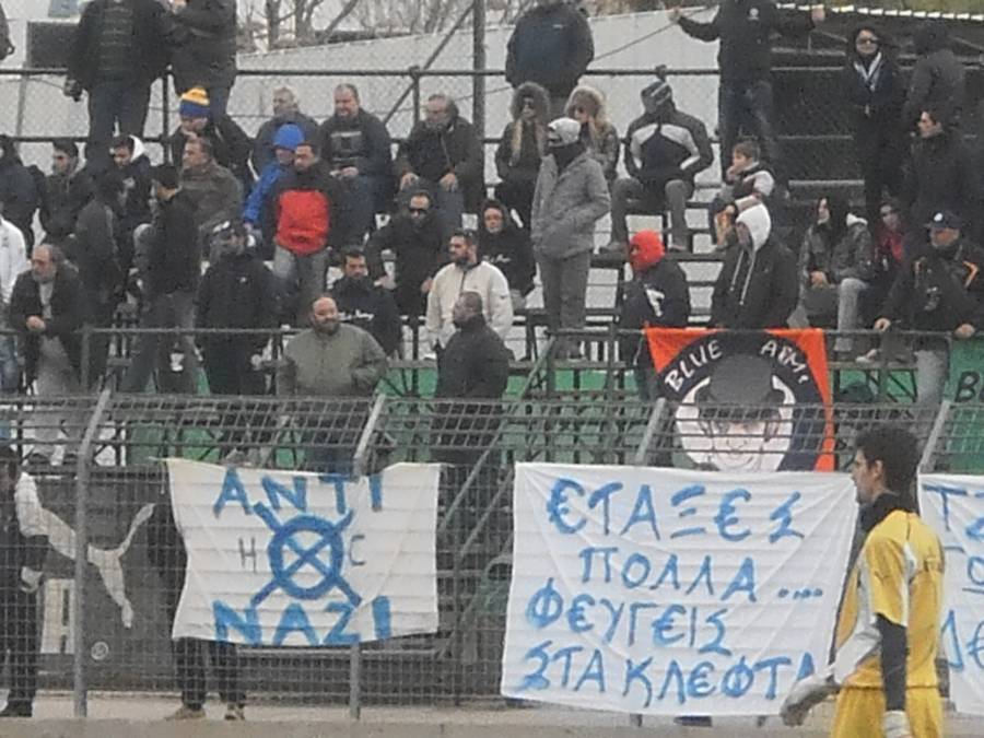 Στα πρώτα λεπτά του αγώνα οι φίλαθλοι της Δόξας τραγούδησαν δύο – τρεις φορές: