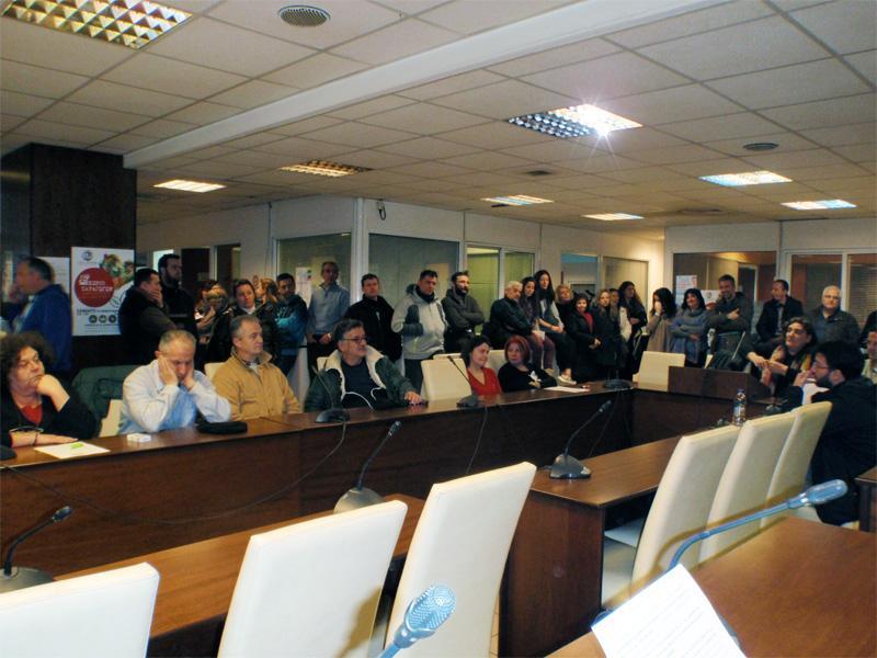 Στη συγκέντρωση μίλησε ο πρόεδρος του σωματείου των εργαζομένων, Χρήστος Παναγιωτόπουλος, ο οποίος άσκησε κριτική στην πολιτική του δήμου και ζήτησε από τη δημοτική αρχή να διεκδικήσει χρήματα από την κυβέρνηση, προσλήψεις μονίμου προσωπικού για να ξεπεραστεί η πολύ άσχημη κατάσταση που βρίσκεται ο δήμος και να υπάρξει επανεκκίνηση των υπηρεσιών, για την καλύτερη εξυπηρέτηση των πολιτών. Αναφέρθηκε στο χρόνιο αίτημα του σωματείου να ενσωματωθούν τα Ν. Πρόσωπα στο δήμο άμεσα και κατηγόρησε τη δημοτική αρχή για κωλυσιεργία. Αναφερόμενος στην πρόθεση του Δημάρχου να υπογραφεί σύμβαση με την ιδιωτική εταιρεία για την ανακύκλωση τόνισε να ξεχάσουν την ιδέα αυτή και απαίτησε να διεκδικήσει ο δήμος την επιδότηση χωρίς την μεσολάβηση της εταιρείας.