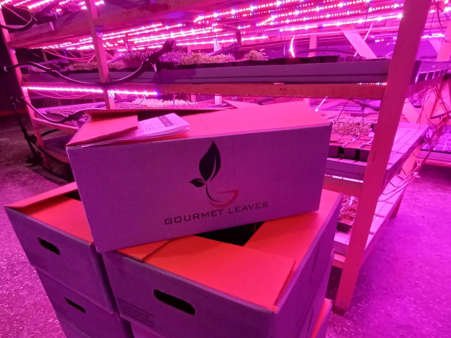 Η Gourmet Leaves, που ιδρύθηκε το 2018 από τον Γιάννη Γιασεμή, ειδικεύεται στην υδροπονική καλλιέργεια βιολογικών microgreens. Η μονάδα καλλιέργειας βρίσκεται σε έναν υπόγειο χώρο 400 τετραγωνικών μέτρων στον Βύρωνα, όπου τα φυτά αναπτύσσονται καθ’ ύψος, σε επίπεδα με ειδικό φωτισμό και ελεγχόμενες συνθήκες υγρασίας και θερμοκρασίας, μιμούμενες το φυσικό περιβάλλον.