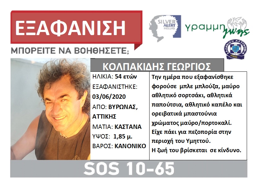 SILVER ALERT για τον 54χρονο αγνοούμενο στον Υμηττό