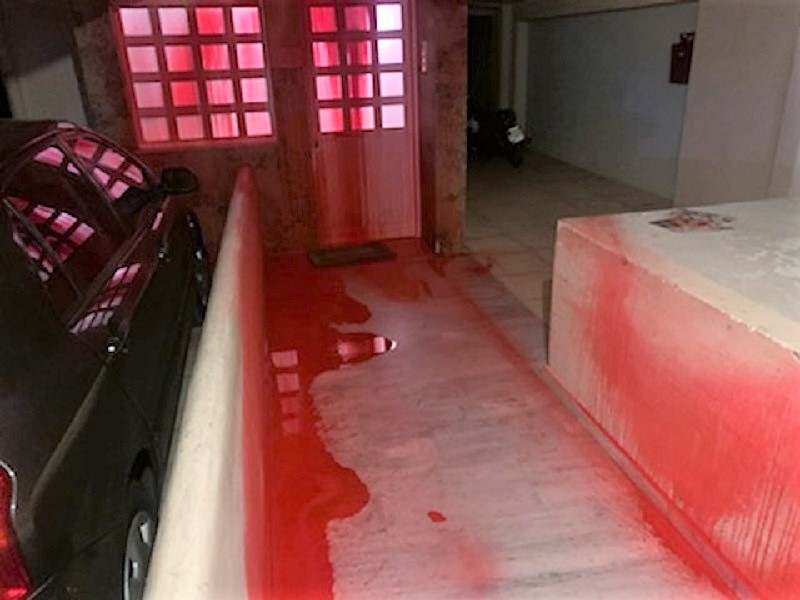 Επίθεση Ρουβίκωνα με μπογιές στο σπίτι του Σταύρου Μπαλάσκα στον Βύρωνα